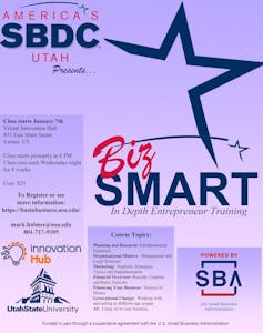 The Uintah Basin Small Business Development Center is hosting "Biz Smart: In Depth Entrepreneur Training" starting January 7th. The cost is $25 for an 8…